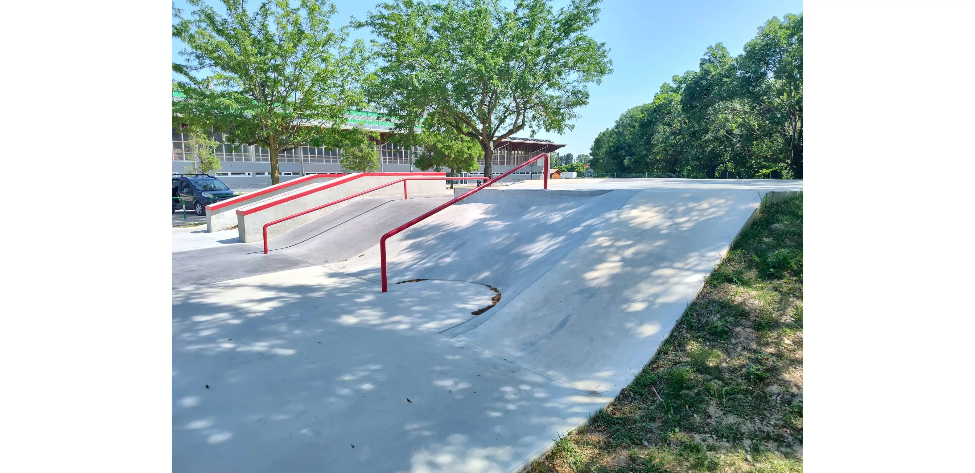 Non si può affatto negare che questa tipologia di park non abbia successo tra gli skateboarders: l'opera che abbiamo realizzato a Padova è certamente un esempio. Linee semplici, street, pulite che consentono l'evoluzione e l'apprendimento per step, fino ai livelli più “alti”. Ci siamo permessi un “ritocchino al disegno” che più di ogni altra cosa ci ha risolto una serie di “casini di casseforme”: probabilmente lo noterete tra le fotografie.