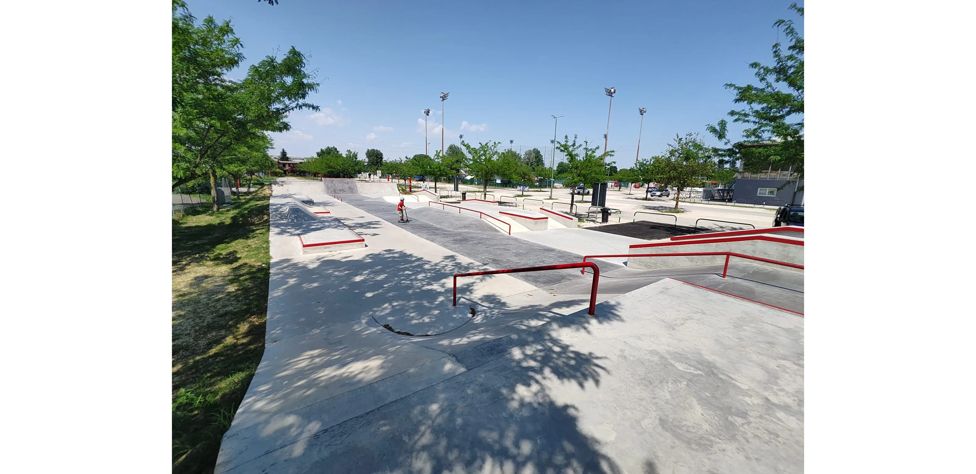 Disegnato da Marco Morigi, lo skatepark di Padova è il primo lavoro del più storico dei progettisti italiani che abbiamo avuto l'onore di realizzare con una squadra (la stesso di Saronno) che sicuramente rendeva pienamente onore alla definizione “skateboarding based”. Allo stesso tempo lo skatepark di Padova è stato il primo lavoro che UAO SKATEPARKS ha realizzato in collaborazione con l'azienda “Sartoti Srl Impianti sportivi” un'azienda serissima con cui abbiamo avuto il piacere e l'onore di collaborare altre volte, sempre in Veneto e sempre realizzando disegni di Marco Morigi.
