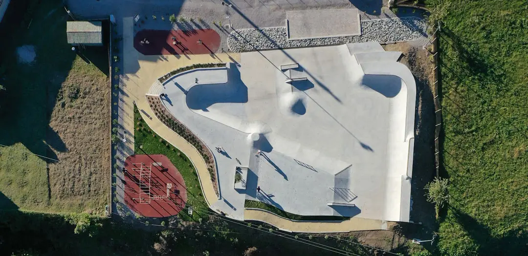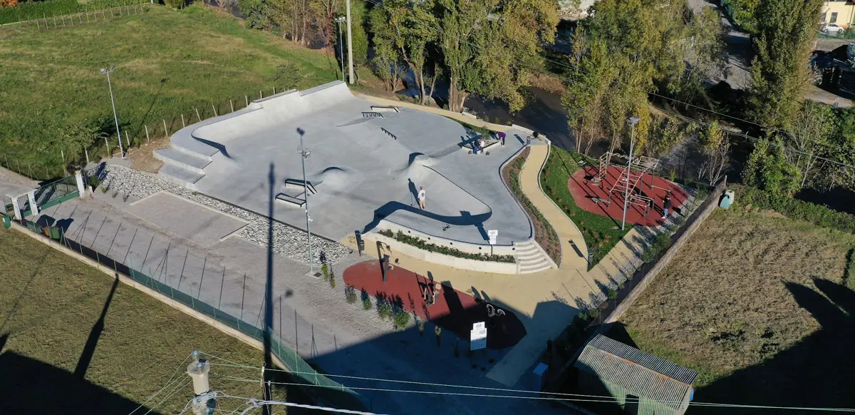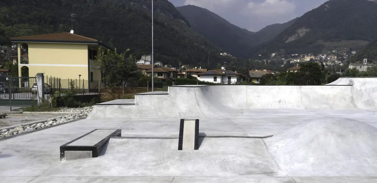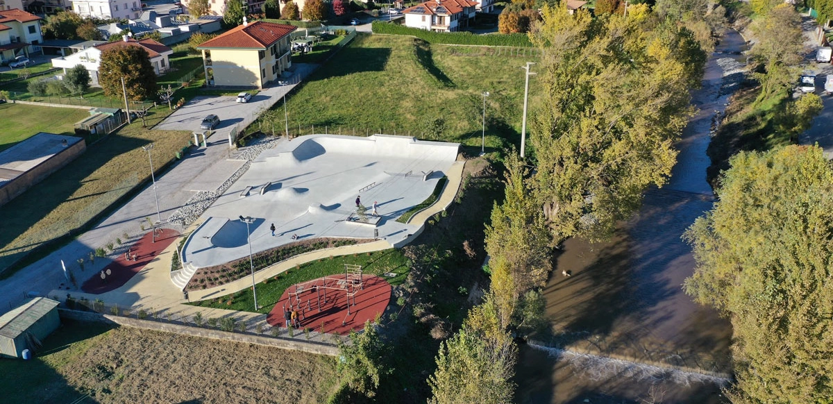Il design di questo skatepark, che è cambiato così tante volte da creare attriti all'interno del team di progettazione, prova a tenere insieme il più possibile le richieste di un gruppo di local che se da un lato voleva tutti i “fondamentali street” (muretti, flatbars, hubba, rails, ecc), richiedeva anche la fluidità di linee in cui non dovevano mancare dei quarter di media dimensione e che dunque dovevano garantire una certa velocità allo skatepark. Il risultato finale (differente rispetto ai render che vedete nelle immagini) è un flow park piuttosto completo caratterizzato da una buona composizione di elementi street e “transition” che fluiscono armonicamente in linee coerenti. L'opera è stata realizzata dall'azienda Operedili Srl con il provvidenziale supporto degli skateboarder Davide Cattaneo e Davide Guarneri, entrambi membri della crew di Boheme DIY Cantù, uno dei primi esperimenti di skatepark in calcestruzzo armato in Italia.