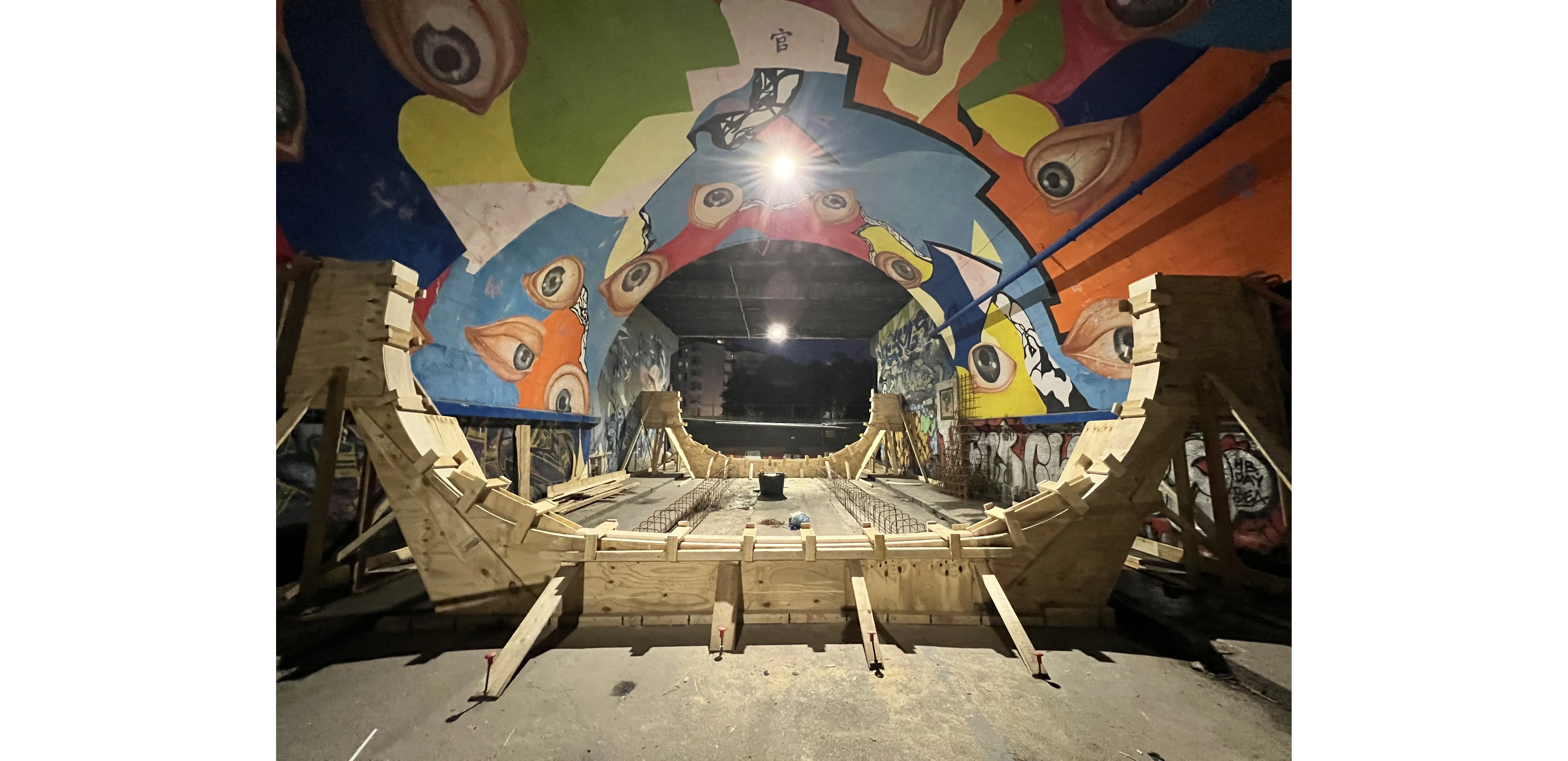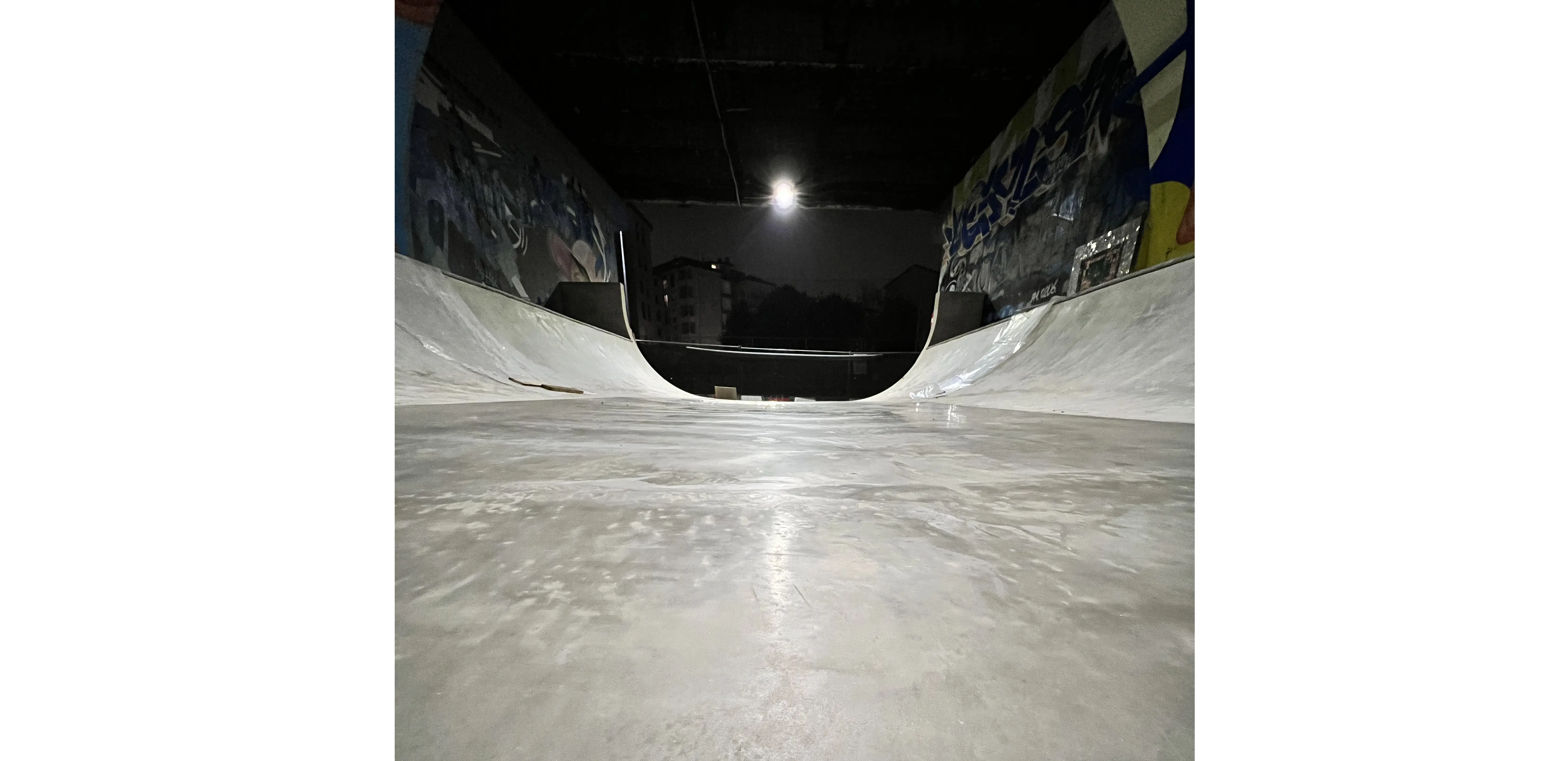 La minirampa sotto il tunnel di via Merano (Milano città) nasce dallo slancio dell’associazione T12 Lab, composta da architetti milanesi impegnati nella riqualificazione dello spazio pubblico metropolitano. I fondi per la realizzazione dell’opera sono stati interamente raccolti attraverso fondazioni private da questa associazione che si è anche fatta carico di redigere il progetto esecutivo e nonché della direzione lavori. Il design iniziale vero e proprio tuttavia è stato redatto da UAO SKATEPARKS tra il 2021 ed il 2023: molte sono state le peripezie per raggiungere lo step “esecutivo” del progetto nonché per realizzare l’opera in sé complicata da tutti i punti di vista.